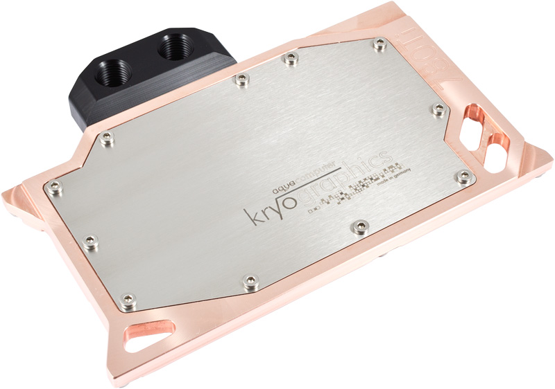 Der Kühler ist nahezu identisch zum kryographics 780, lediglich der Bereich der Spannungswandler weicht etwas ab da die 780 Ti mehr Regler besitzt, die gekühlt werden müssen.